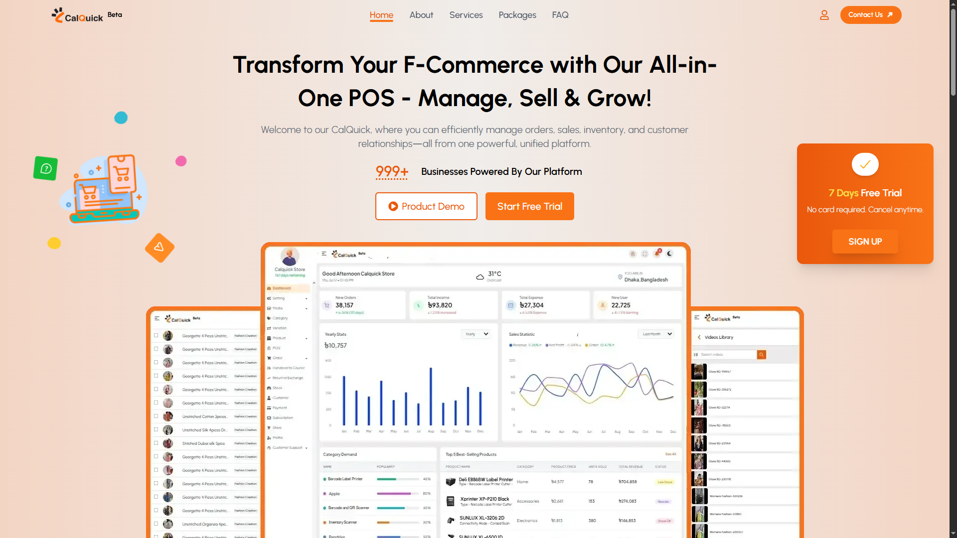 Designed and delivered a full-stack SaaS for e-commerce sellers, featuring a unified dashboard for online and in-store management. Built a hybrid order system with real-time sync, multi-store architecture, and integrated courier services with live tracking. Developed advanced inventory with variants, supplier ledger, expense tracking, and real-time profit analytics. Implemented subscription billing, theme customization, SMS notifications, and reusable media management.
